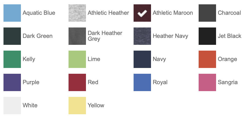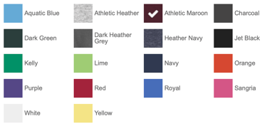 50/50 cotton/poly (Dark Heather Grey, Heather Navy, Neon Pink)